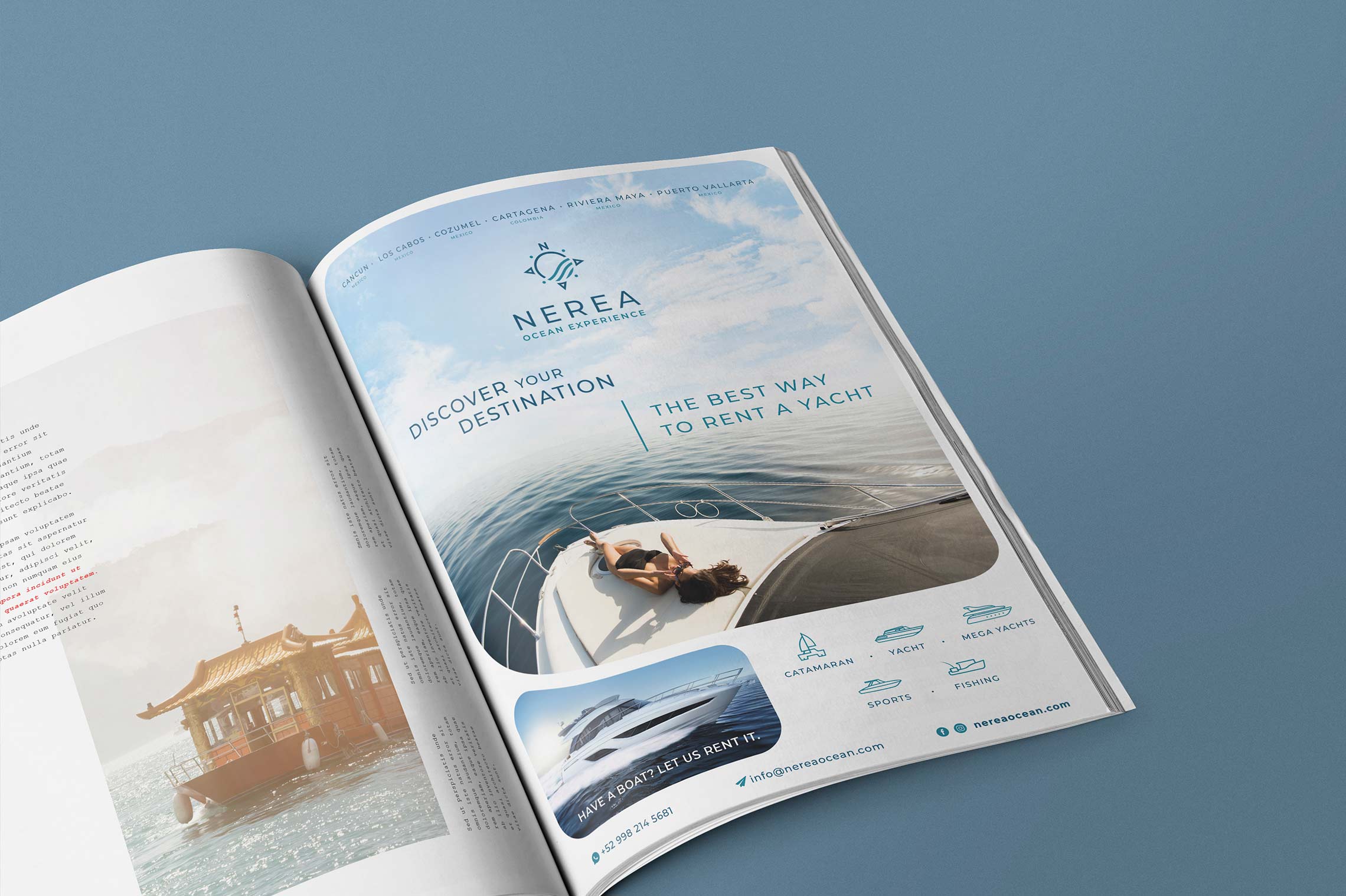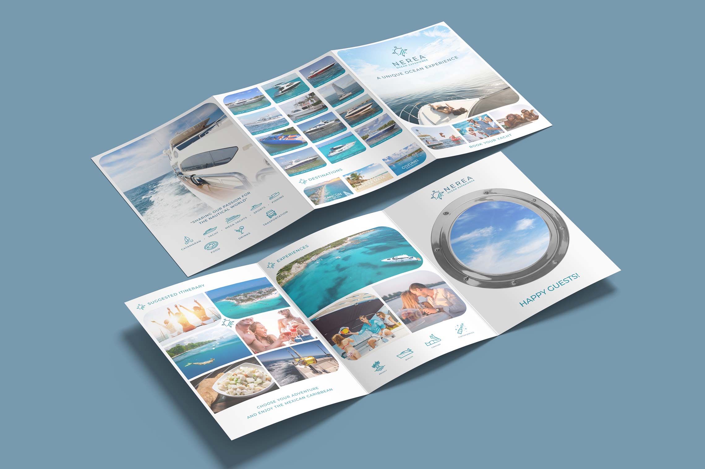 Desarrollamos materiales de comunicación y herramientas de venta siguiendo la línea de diseño de la marca la cual se dedica a la renta de yates, utilizando imágenes que reflejen las actividades y calidad del producto.