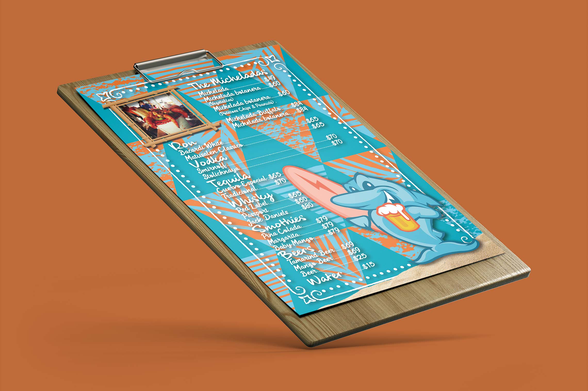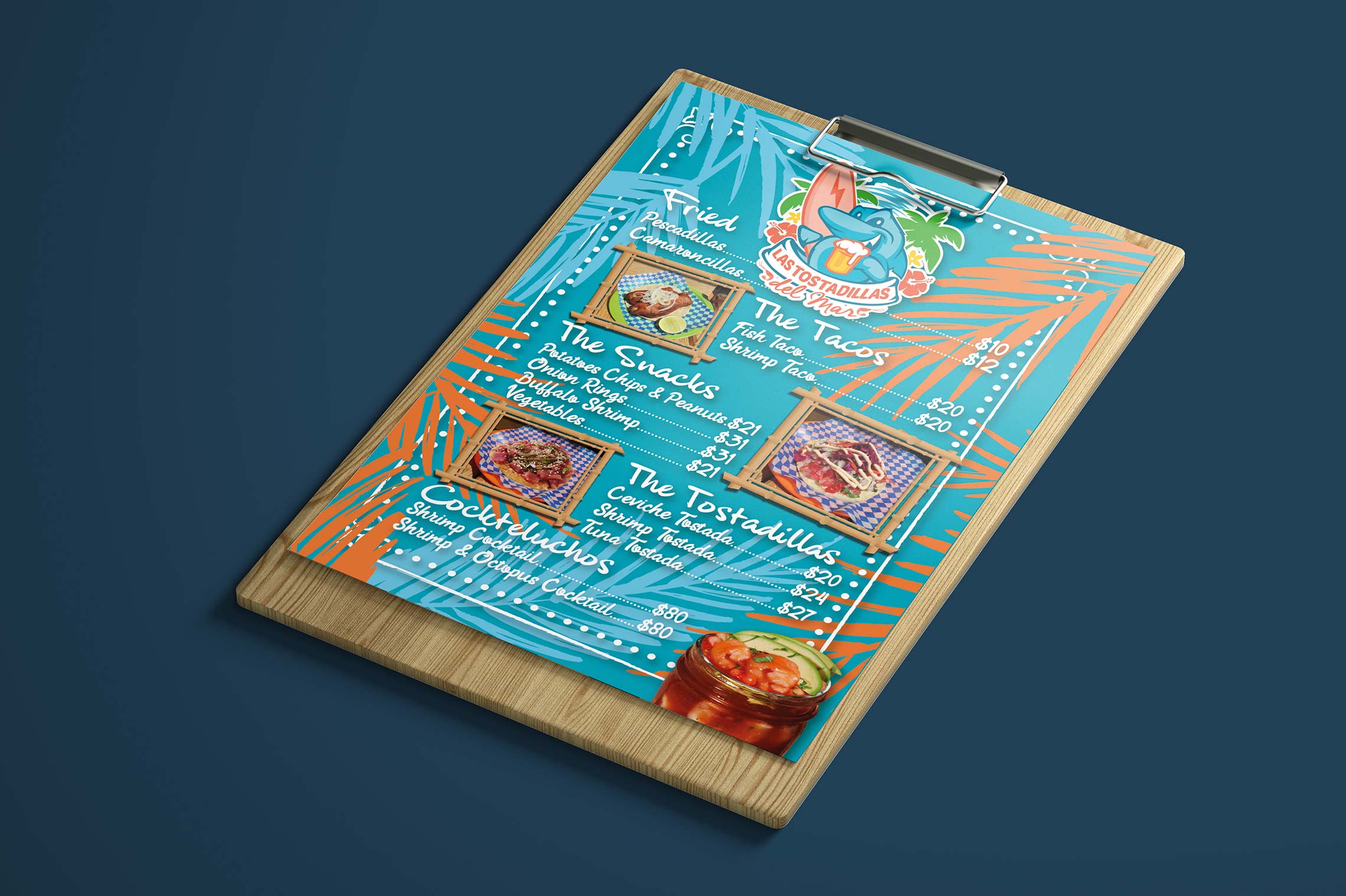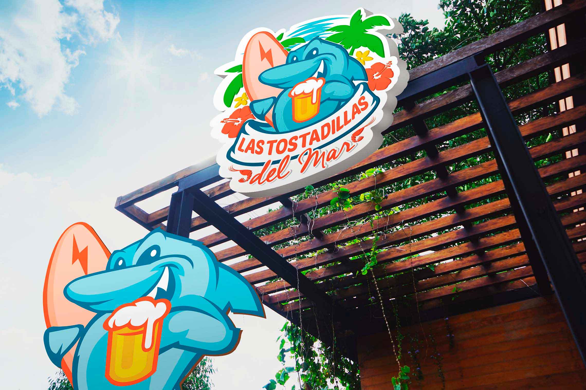 El concepto del restaurante es ofrecer mariscos y cervezas a precios bajos y concentrarse en el volumen, en un ambiente caribeño y agradable. Se buscó desarrollar una imagen amigable y accesible que se relacione con su entorno, ilustrando un tiburón como mascota para proporcionarle dinamismo y empatía a la marca.
