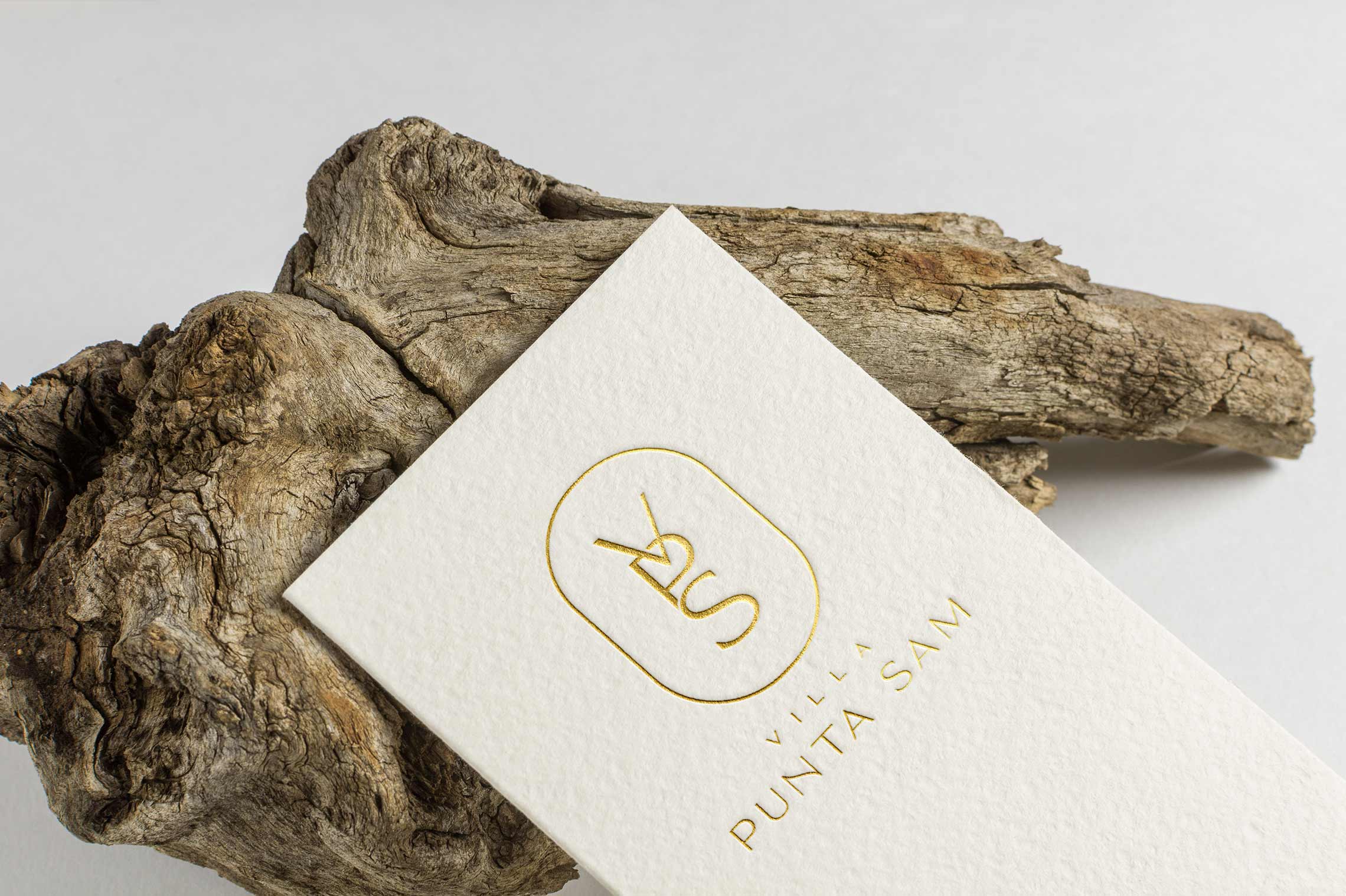 Desarrollo de logotipo para una moderna villa situada en Punta Sam, Q. Roo. El cliente pidió desde el principio un monograma. Después de muchos bocetos y justificaciones de las tres letras, llegamos a esta propuesta con un color dorado y blanco, con forma horizontal delimitado por un contorno con trazos ligeros y con una tipografía light con ajustes singulares que representa la elegancia y simplicidad del lugar.